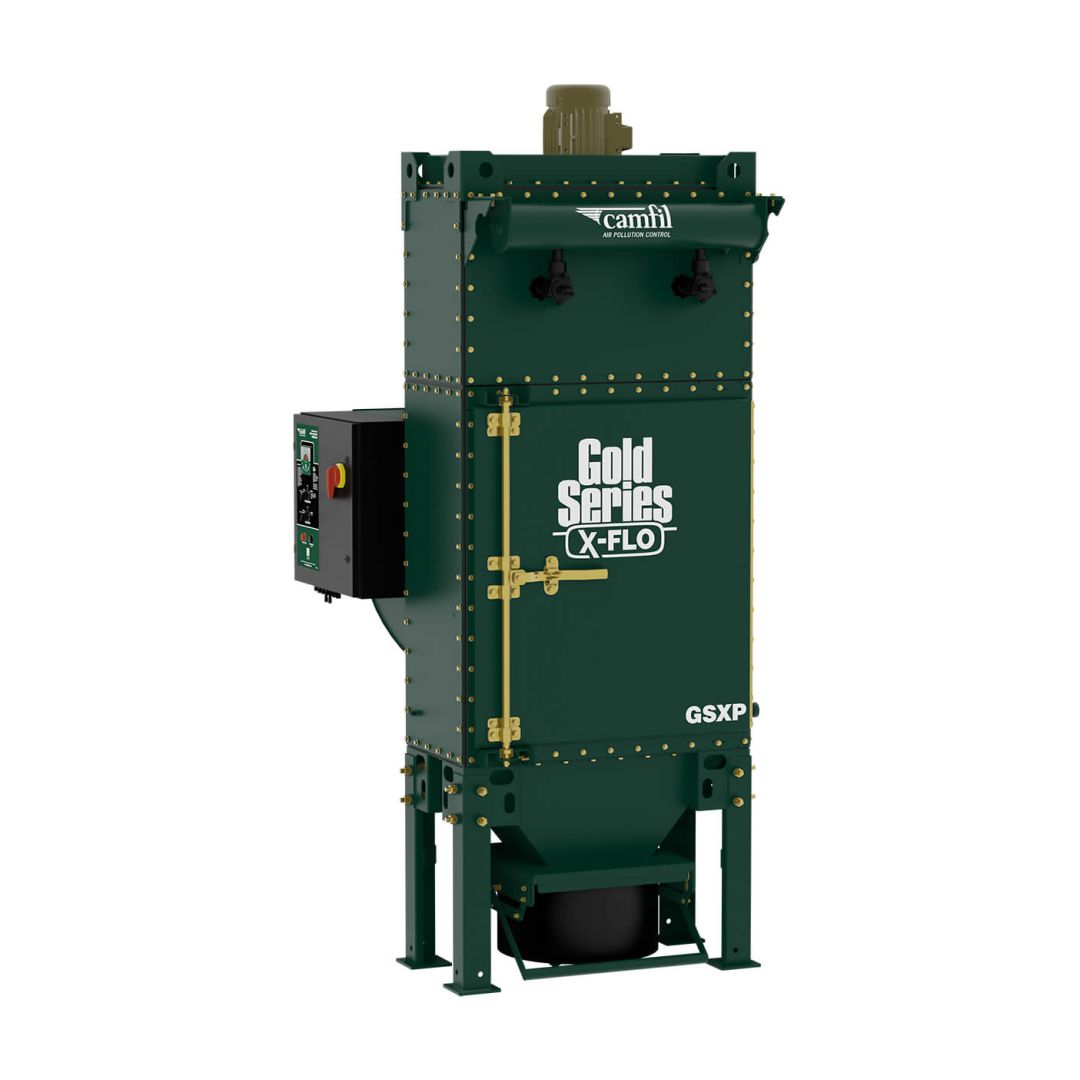 Las unidades GSXP están construidas con acero de calibre 7 y 10 de alta resistencia y están recubiertas de polvo por dentro y por fuera para una máxima durabilidad. La tecnología de flujo cruzado combinada con una configuración de deflector única crea un flujo de aire uniforme que prolonga la vida útil del filtro. Manejan flujos de aire de hasta 3000 cfm usando 2, 4 o 6 cartuchos de filtro HemiPleat eXtreme® Gold Cone® X-Flo , según el flujo de aire requerido. Obtiene la máxima potencia de procesamiento de polvo de metal y flujo de aire para cualquier huella mientras mantiene una caída de presión baja.