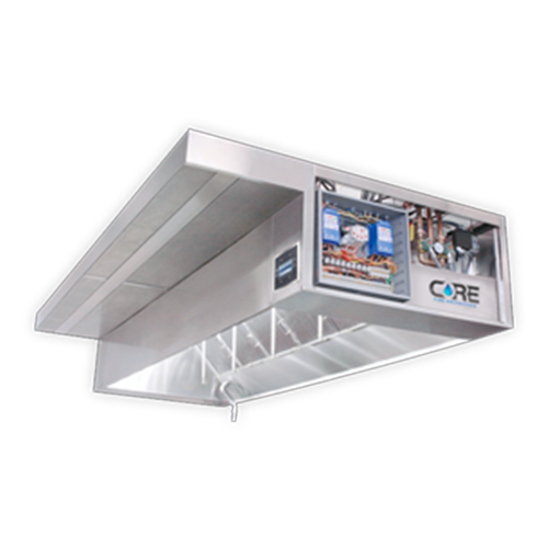 Adicional, CaptiveAire tiene El sistema de protección contra incendios CORE es un sistema de supresión de incendios automático y prediseñado que está en la lista ETL según la norma 300 de UL. El sistema de protección CORE está diseñado para proporcionar cobertura primaria para equipos de ventilación, incluidas campanas, conductos, cámaras y filtros.